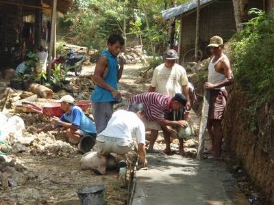 Seminggu yang lalu makadam jalan, dan sekarang bikin betonisasi jalan dengan dana swadaya dari masyarakat.